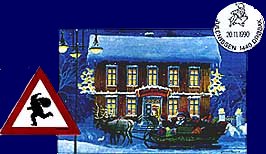 Neben dem oben erwähnten Rovaniemi gibt es noch ein Weihnachtsdorf in der norwegischen Stadt Drøbak. Direkt am Marktplatz finden Sie ein Weihnachtshaus und das Postamt des Julenisse = Weihnachtsmann mit dem einzigen offiziellen Warnschild vor Weihnachtsmannwechsel.